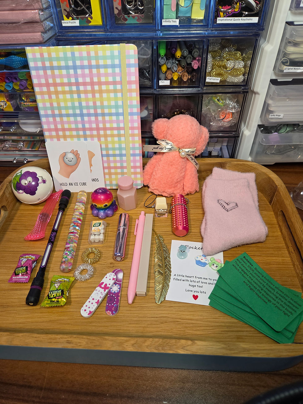 Discover the magic of NBP Bundles, where wellness meets joy. Our curated self-care packs are crafted with love and intention to bring balance, calm, and positivity into your life. Through randomly selected balls , each bundle is uniquely tailored to your needs, filled with grounding tools, sensory delights, empowering affirmations, and a special surprise. Let NBP Bundles be your companion on the journey to self-discovery and well-being.